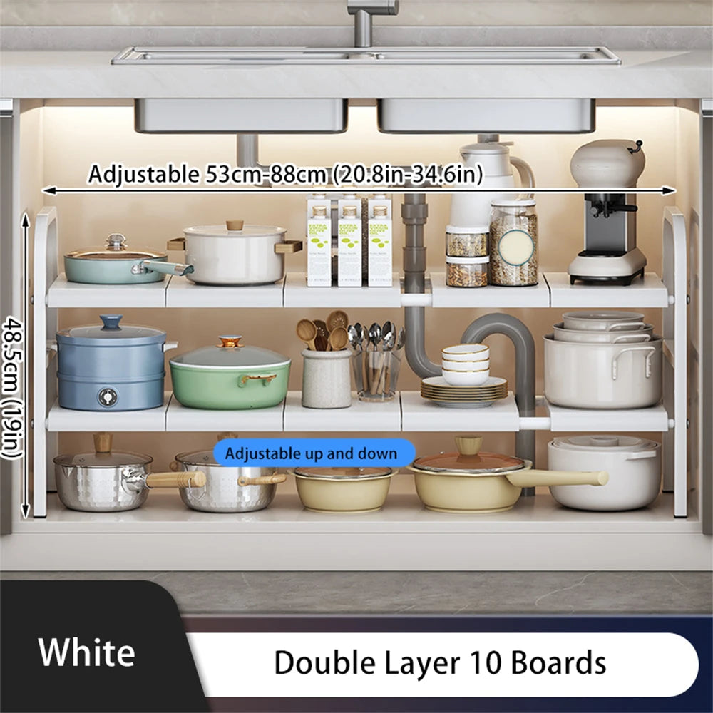 1 Set Multi-Use Kitchen Expandable Cabinet Shelf Organizer ,Removable Baskets