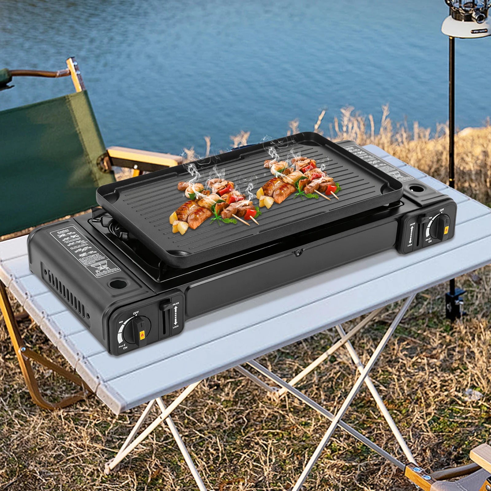 2-Burner Portable Camping Stove, Butane, BBQ, Home (with Grill Tray)