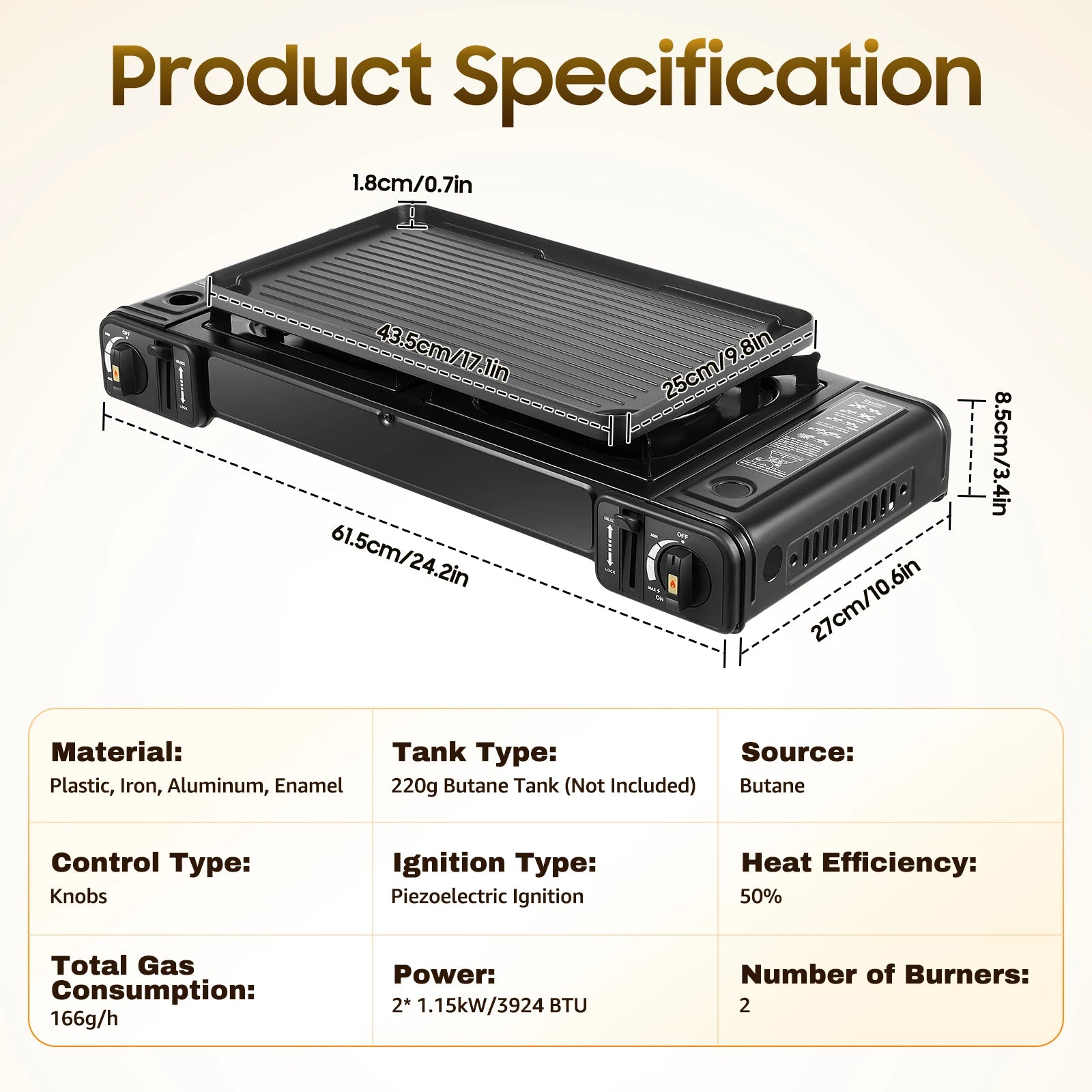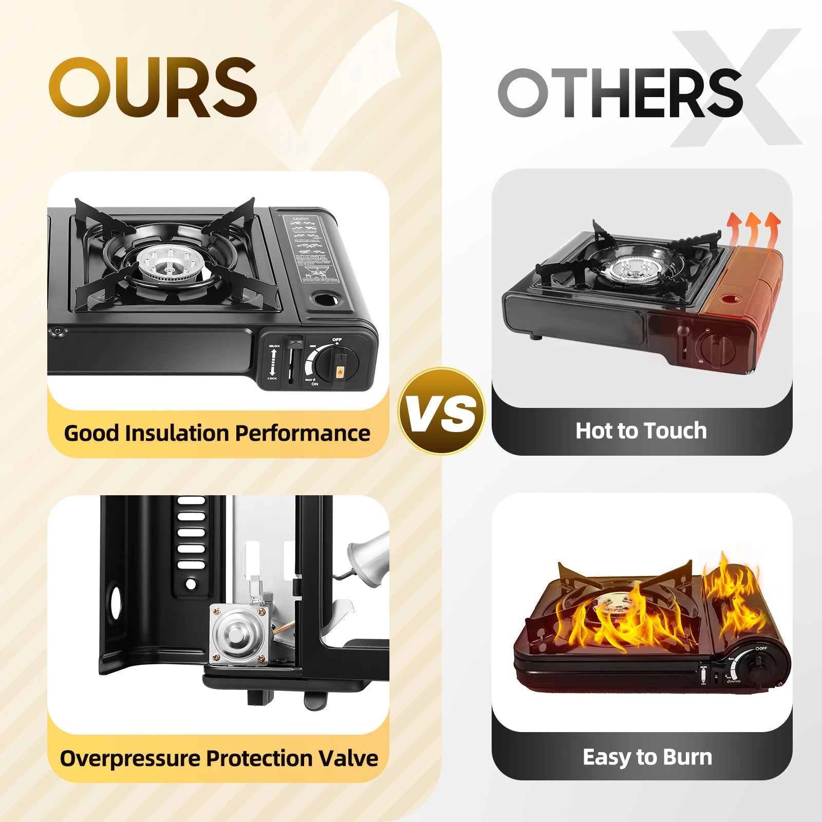 2in1 2-Burner Portable Butane Camping Stove Kit w/Baking Pan and Carrying Case, Auto Ignition