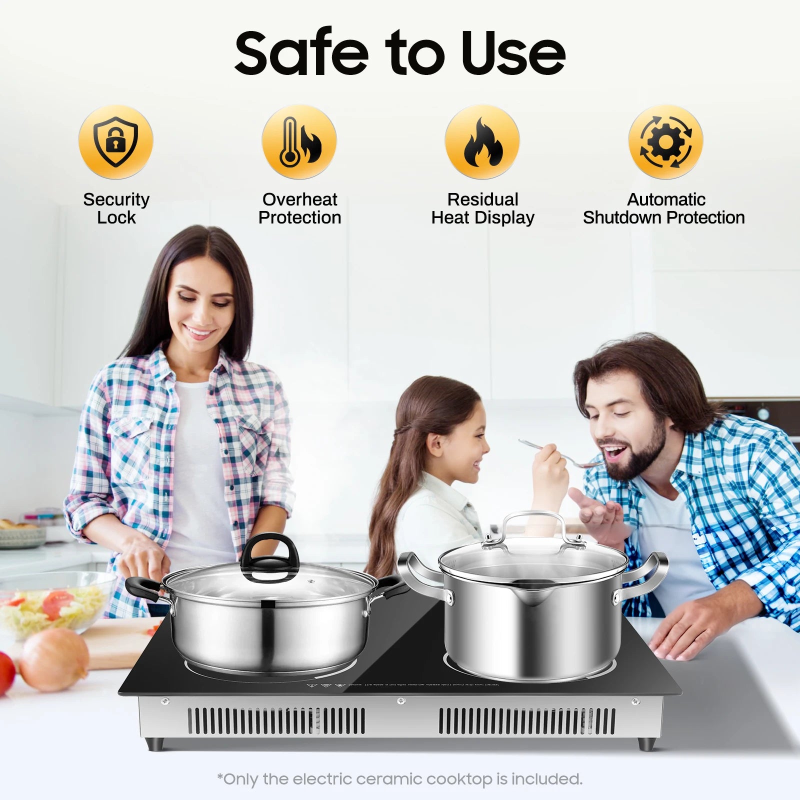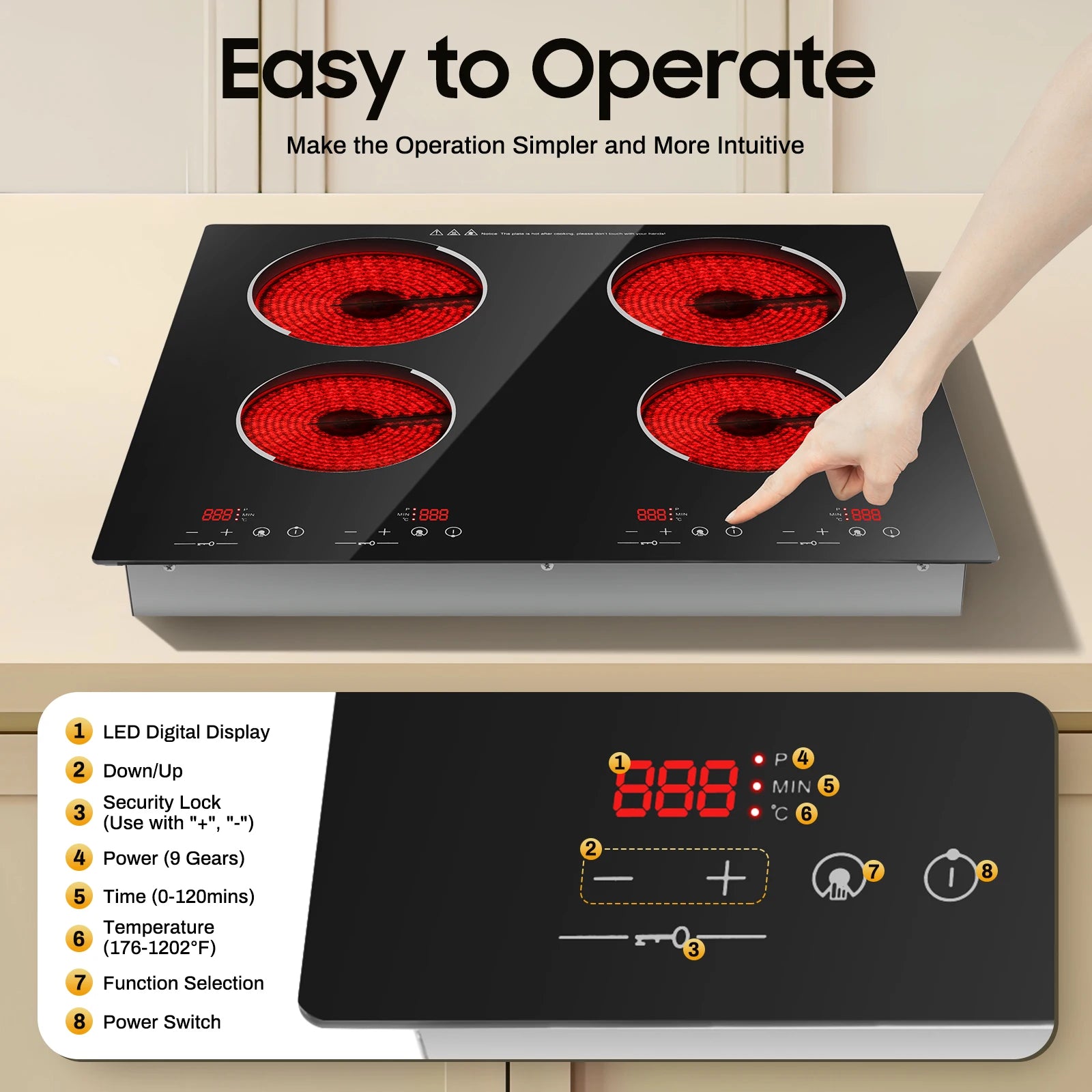 4 Burner, 110v, 24 Inch Electric Stove Countertop & Built-in, Plug-in Electric Cooktop with 9 Power Levels,3000W