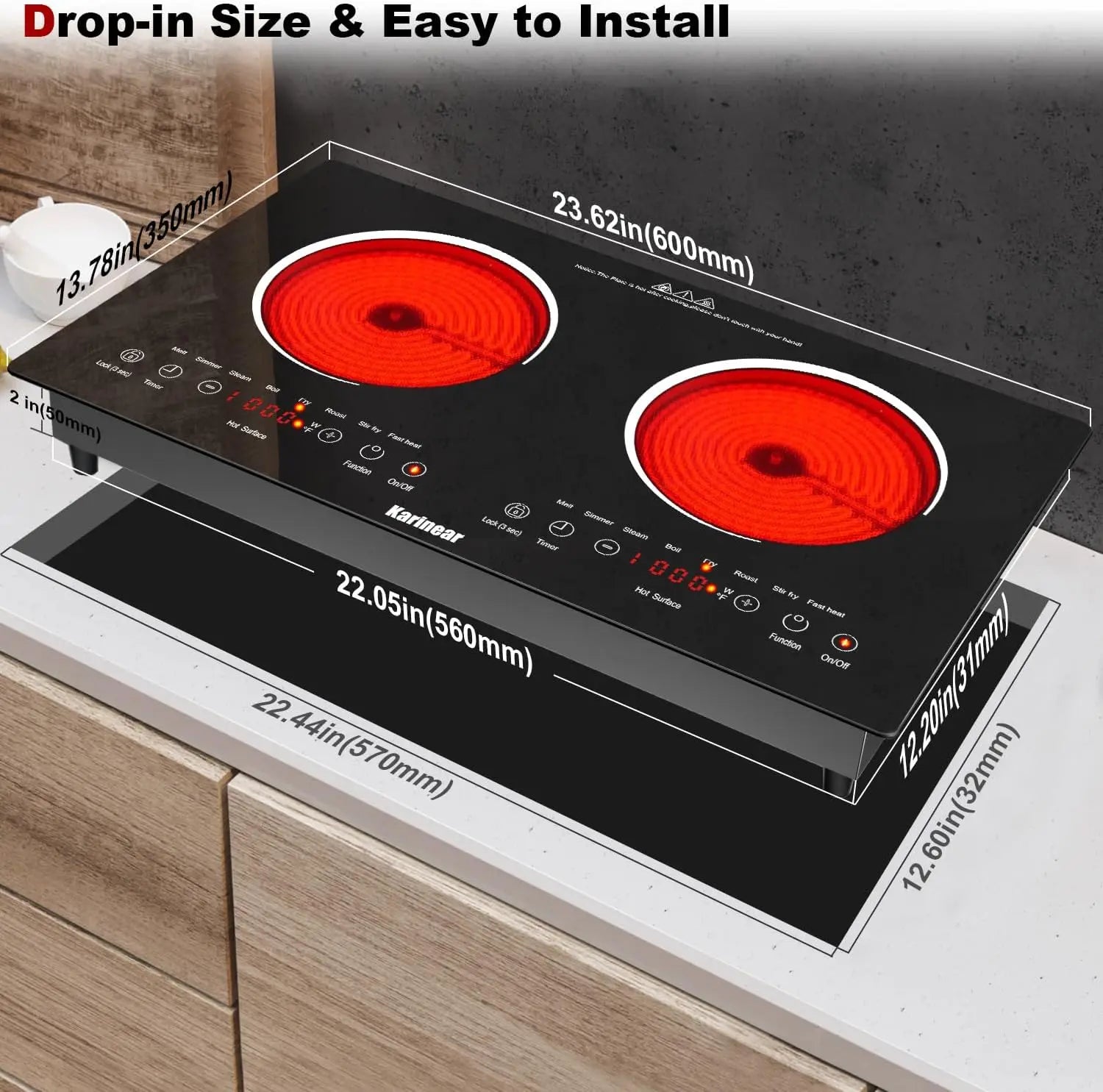 Karinear 2 Burners Ceramic Electric Cooktop, Countertop or Built-in, with Outlet Plug(USA:110-120V