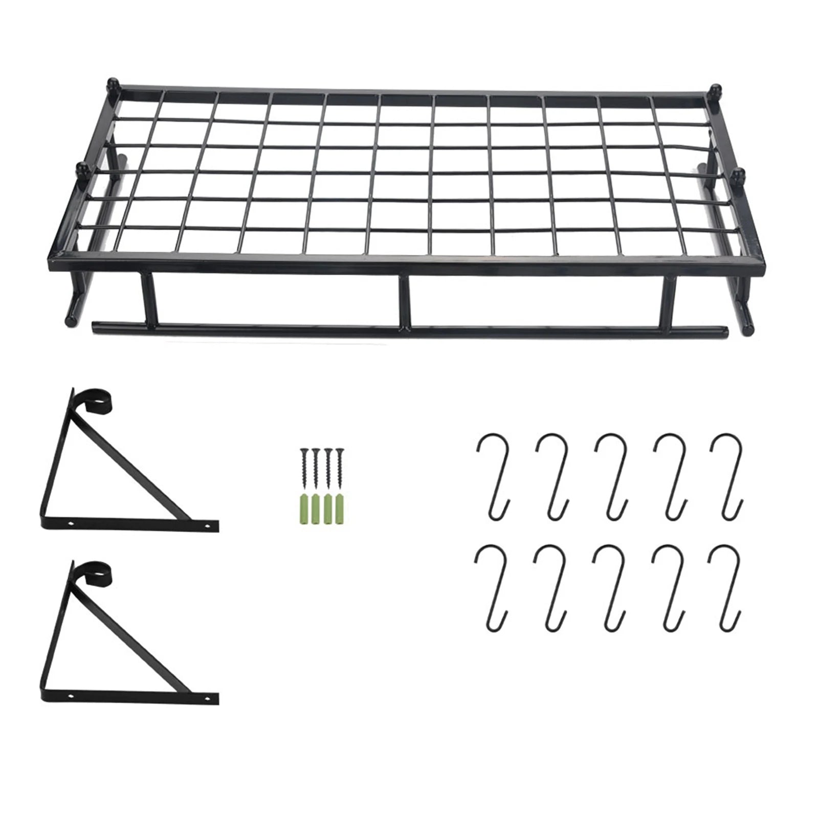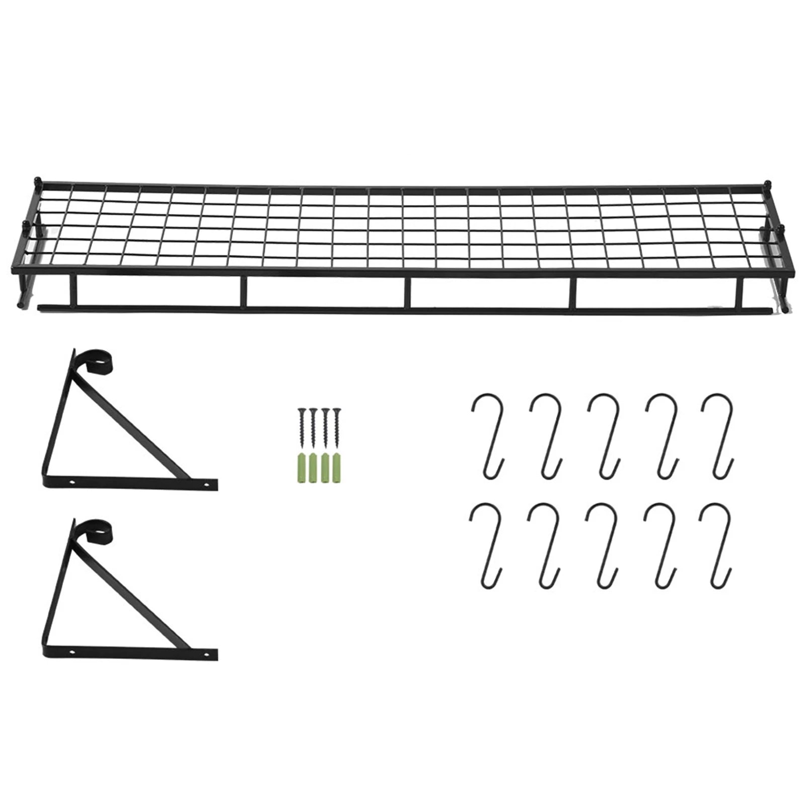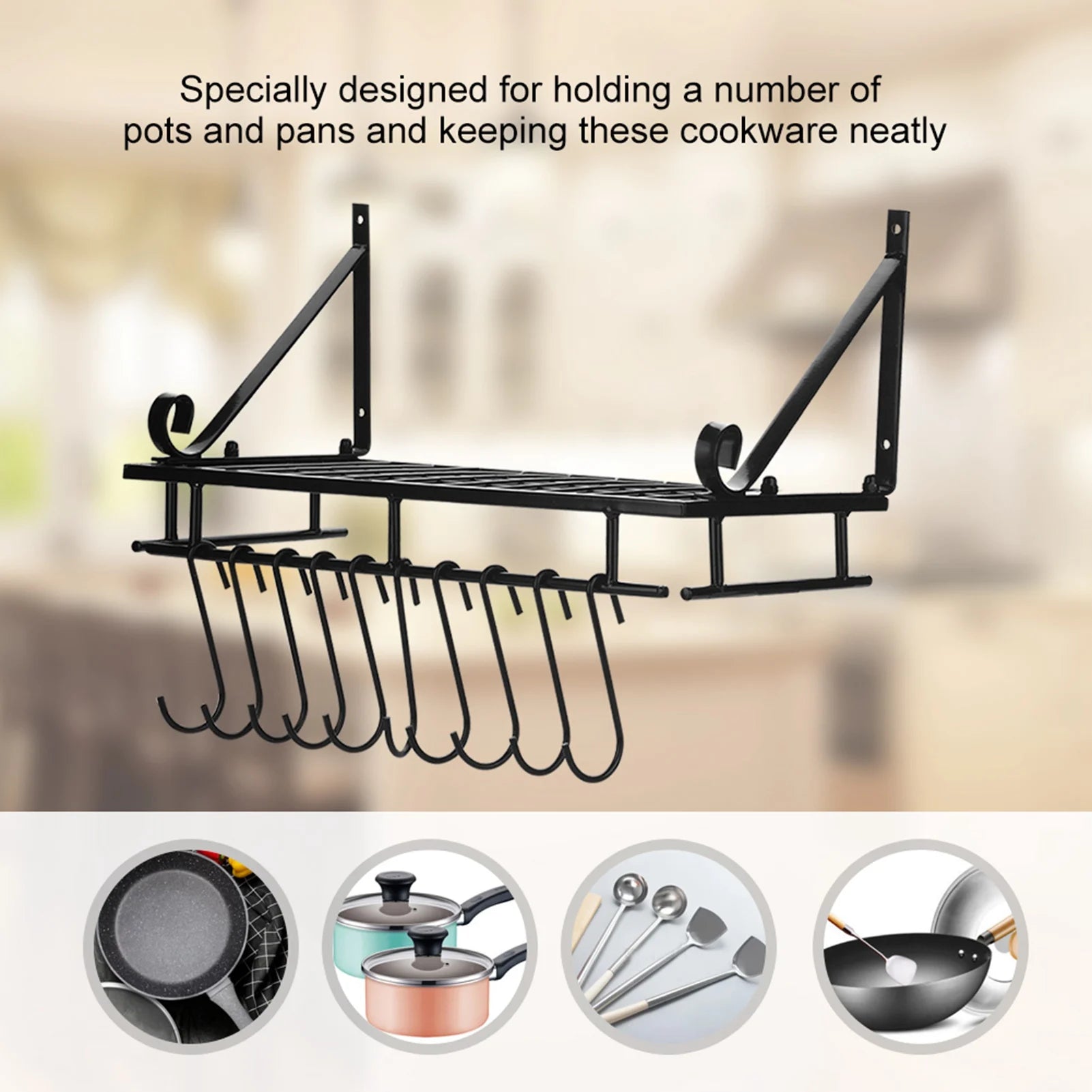 Kitchen Storage Metal Pan & Pot Rack Wall Mounted with 10 Hook Holders